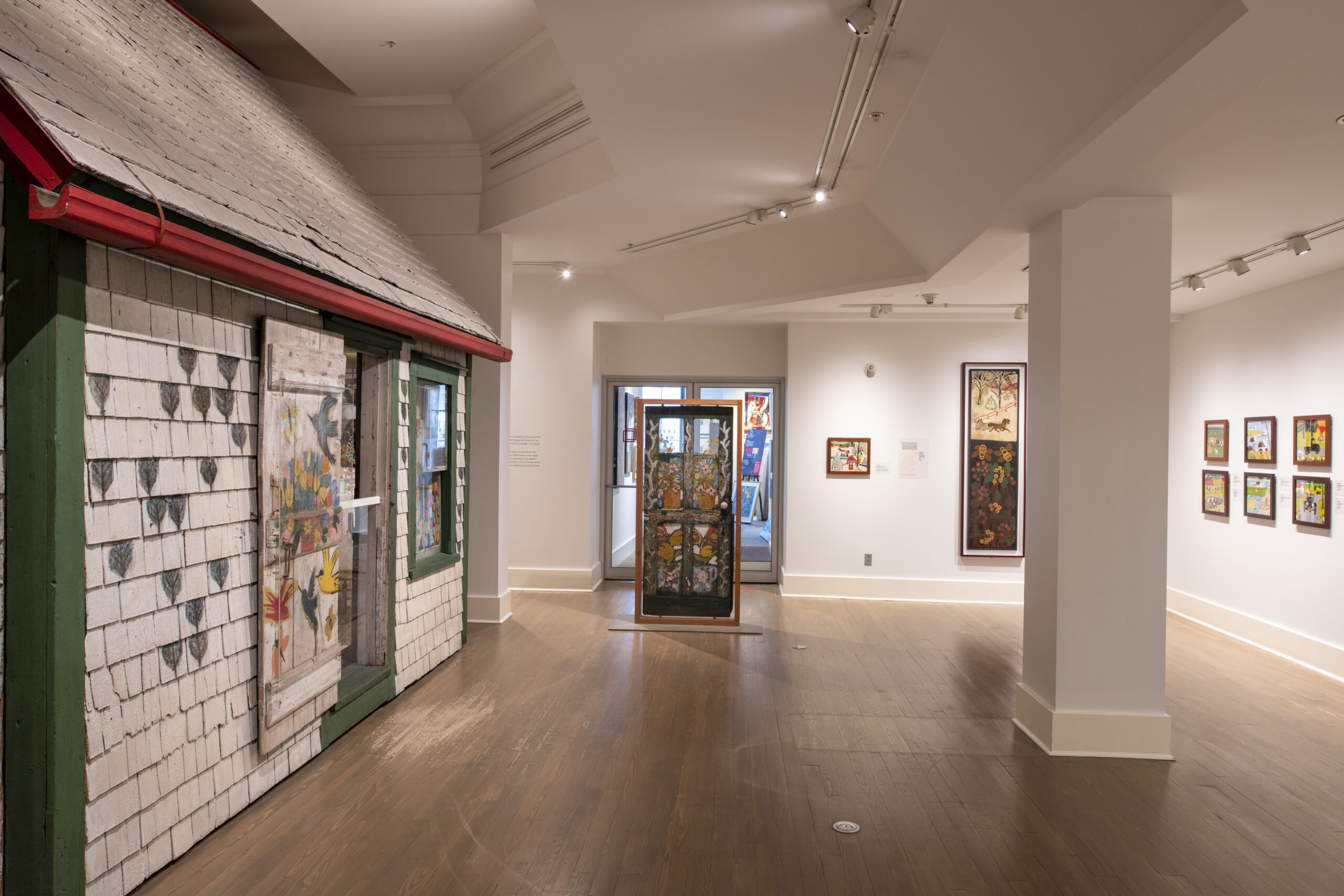 Interior gallery space at the Art Gallery of Nova Scotia featuring Maud Lewis’s painted house and folk art.