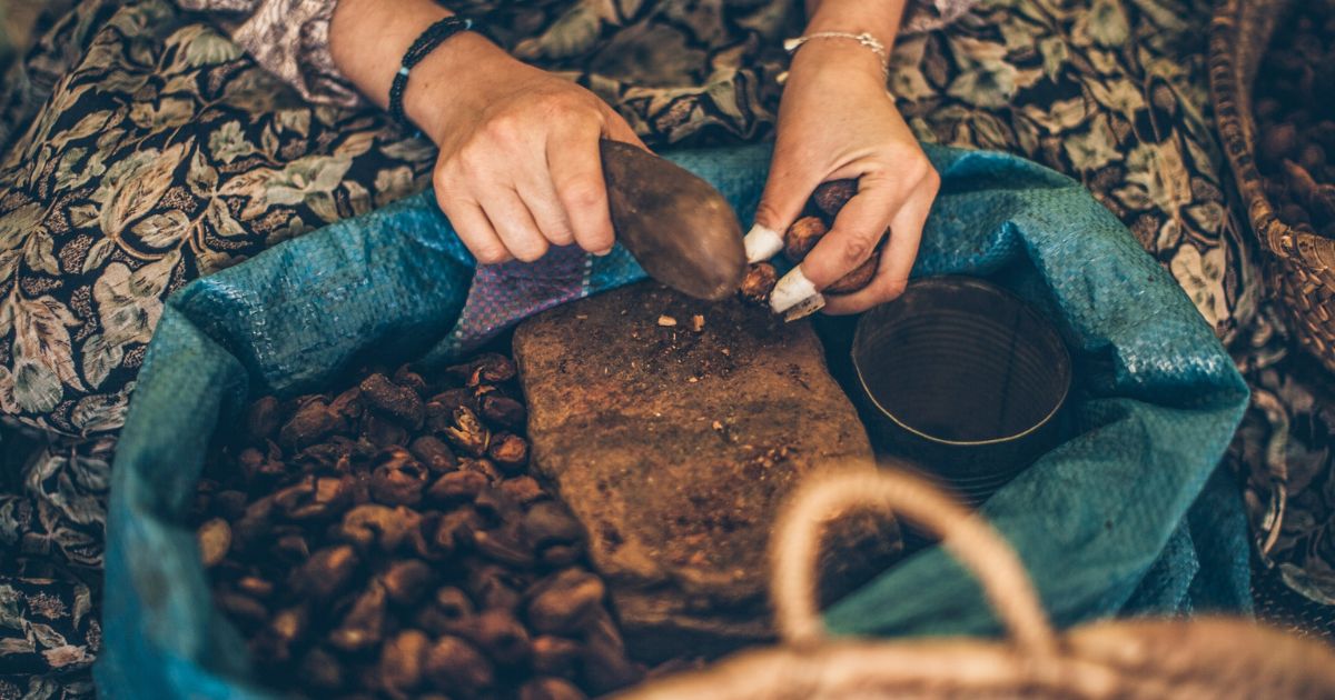 In Souss Massa, a Moroccan woman carefully sorts argan fruits by hand, preserving the ancient tradition of artisanal oil extraction.